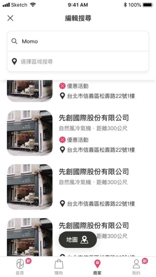 - 關鍵字搜索 : 於上方搜尋框,輸入商家名稱進行搜尋