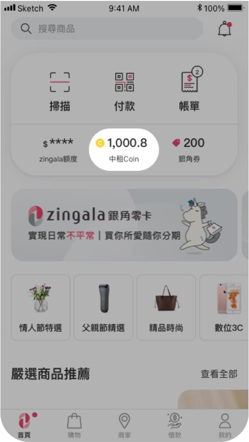 點選 zingala 銀角零卡 APP 首頁「中租Coin」