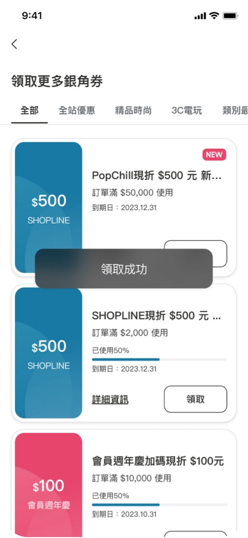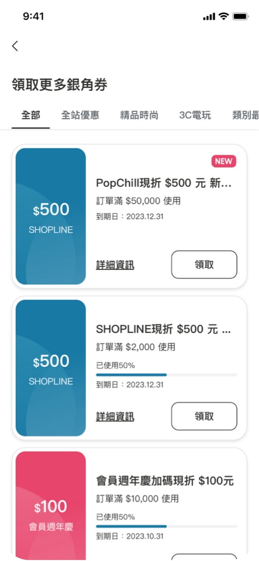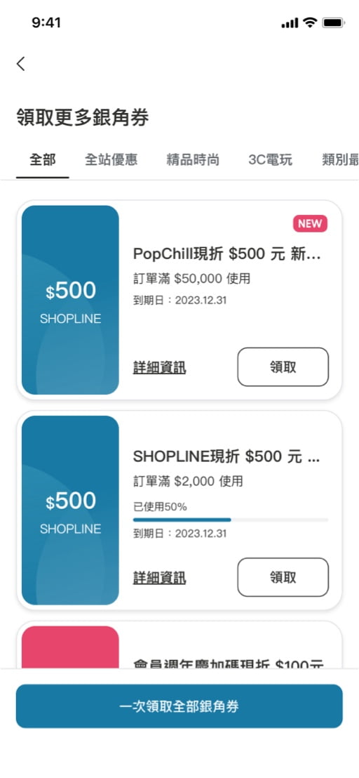 選擇想領取的銀角券,或者也可以點擊銀角券查看適用的活動注意事項及規則說明。