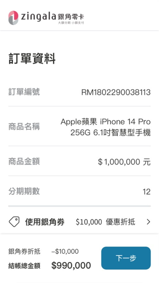 於 zingala 銀角零卡“先買後付”合作商家,選購商品並結帳(請先確認商品的付款方式支援 zingala 銀角零卡,或參考該商家提供的操作說明)